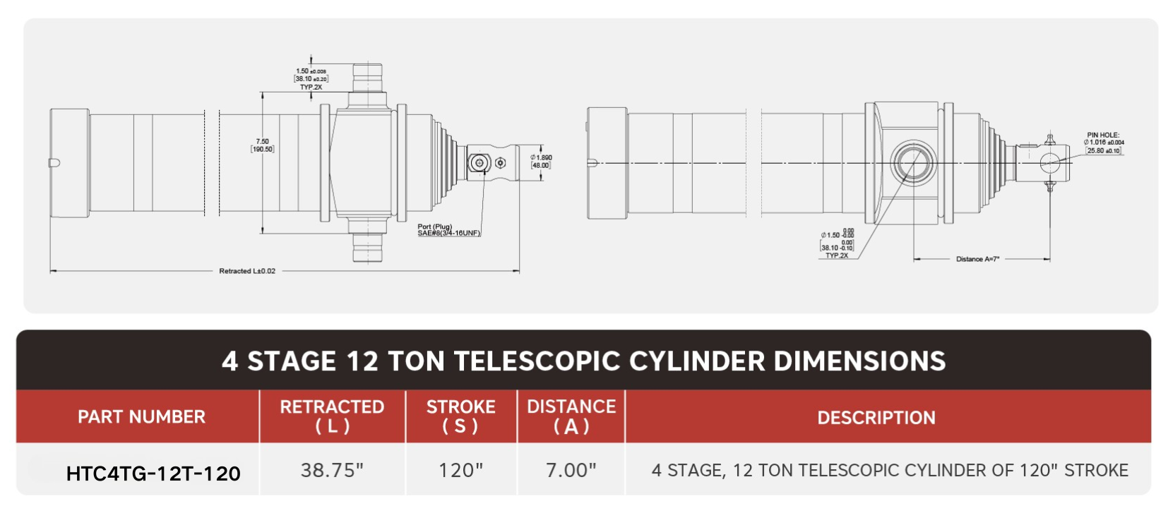 „ХТЦ4ТГ-12Т-120“, 4 степена, 12 тона од 120 инча, телескопски цилиндар