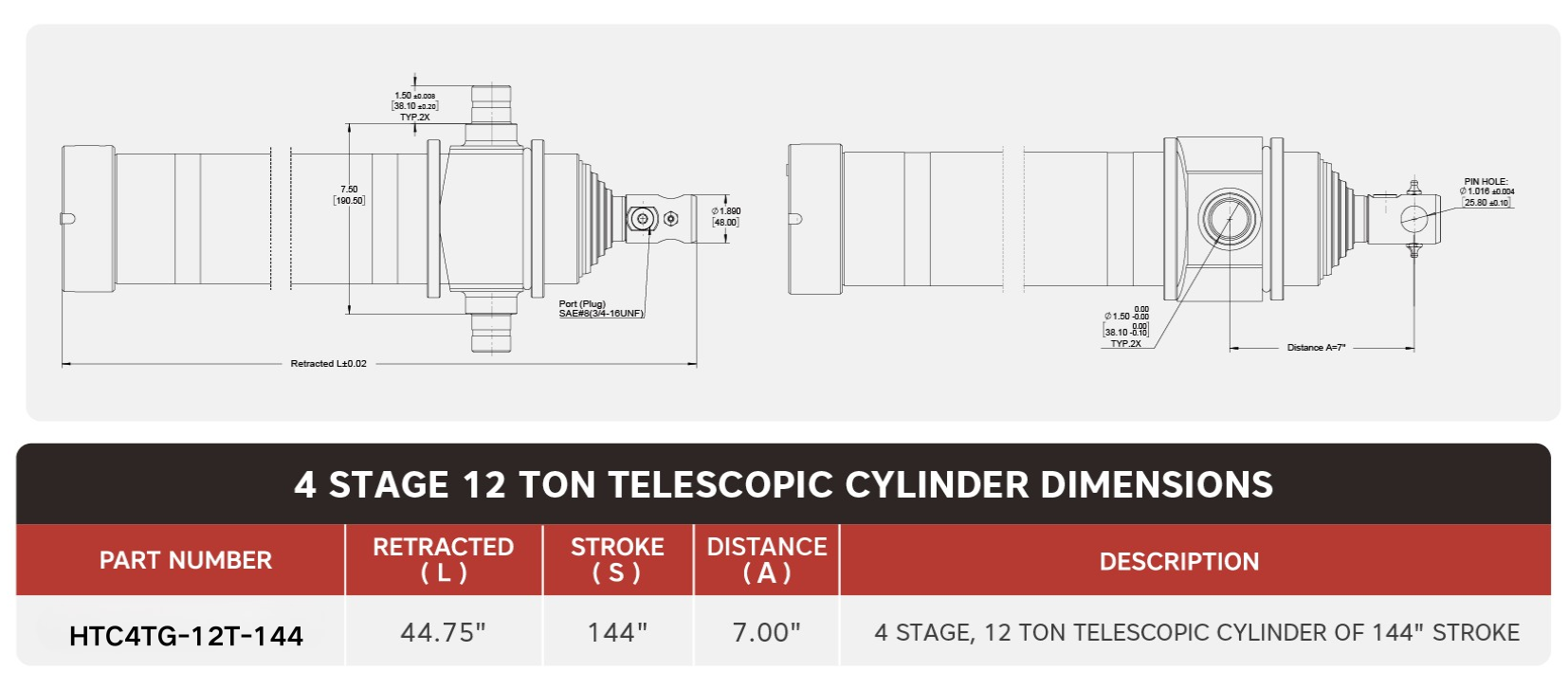 „ХТЦ4ТГ-12Т-144“, 4 степена, 12 тона од 144 инча, телескопски цилиндар