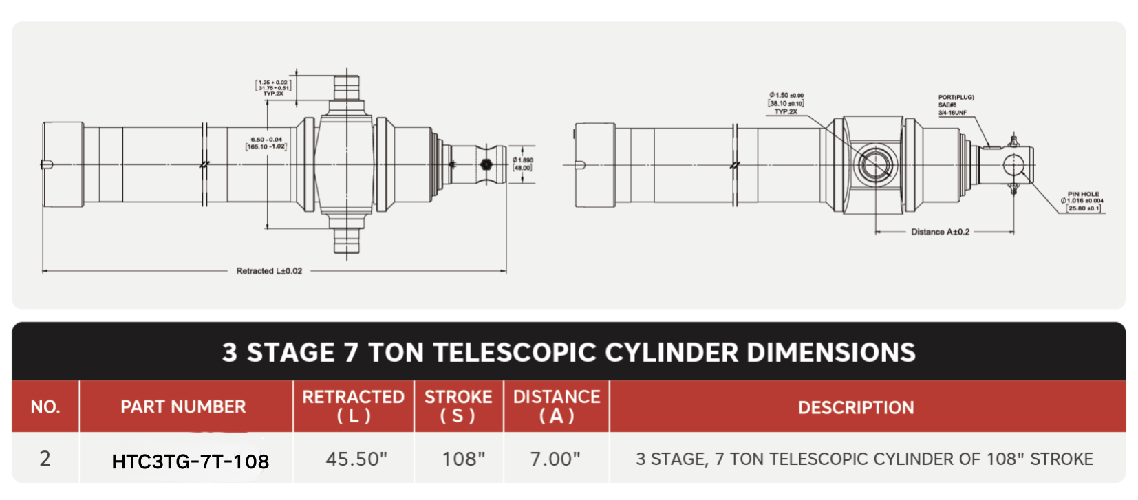 „ХТЦ3ТГ-7Т-108“, 3 степена, 7 тона од 108 инча, телескопски цилиндри